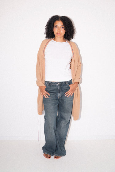 La sua texture morbida e la caduta fluida del tessuto la rendono una compagna versatile in ogni stagione.